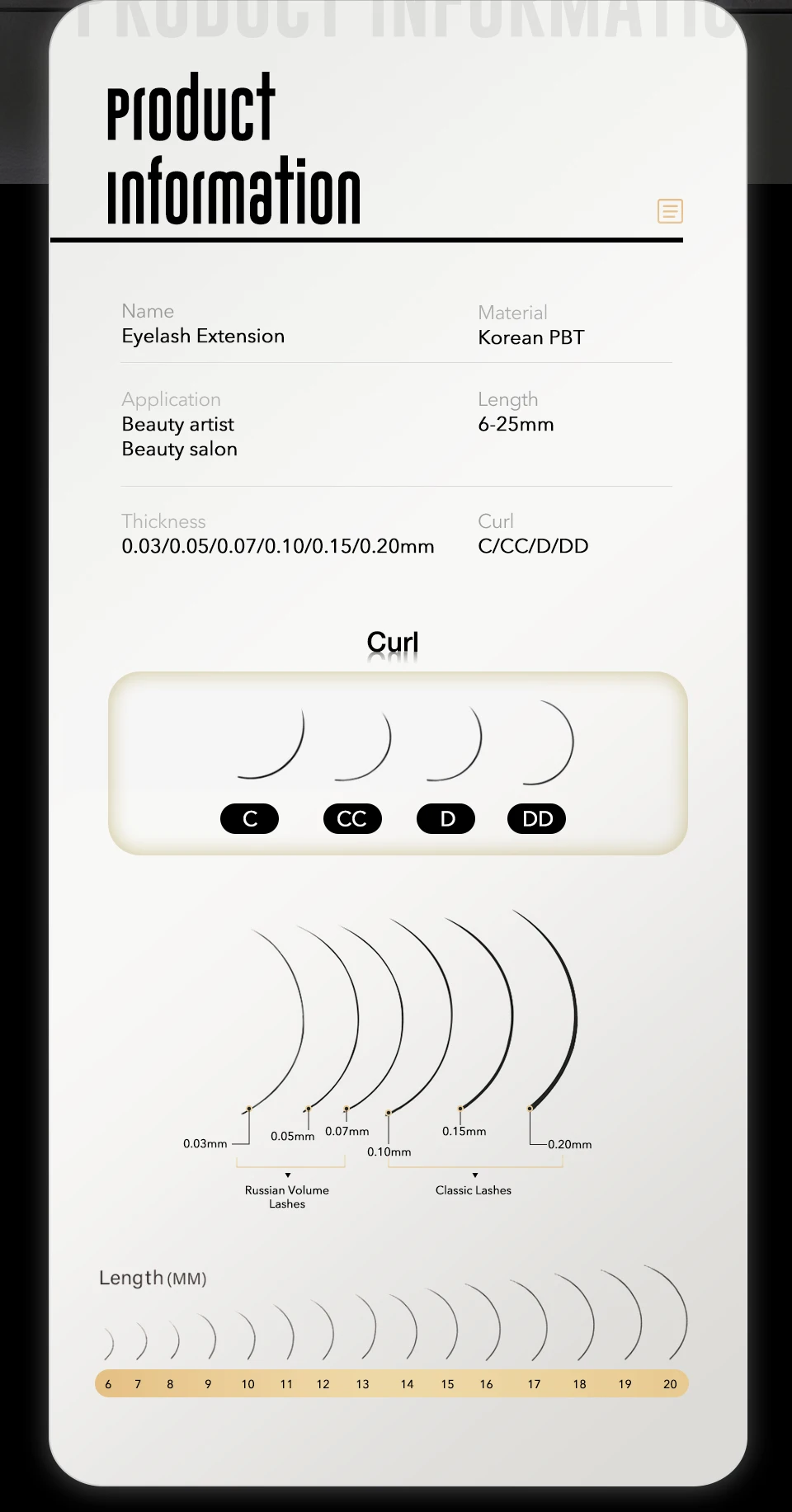 ✔️ Customizable Volume & Curl – Choose from curls C, CC, D, DD and lengths 5–25mm to achieve any look — from natural classic to full Russian volume.